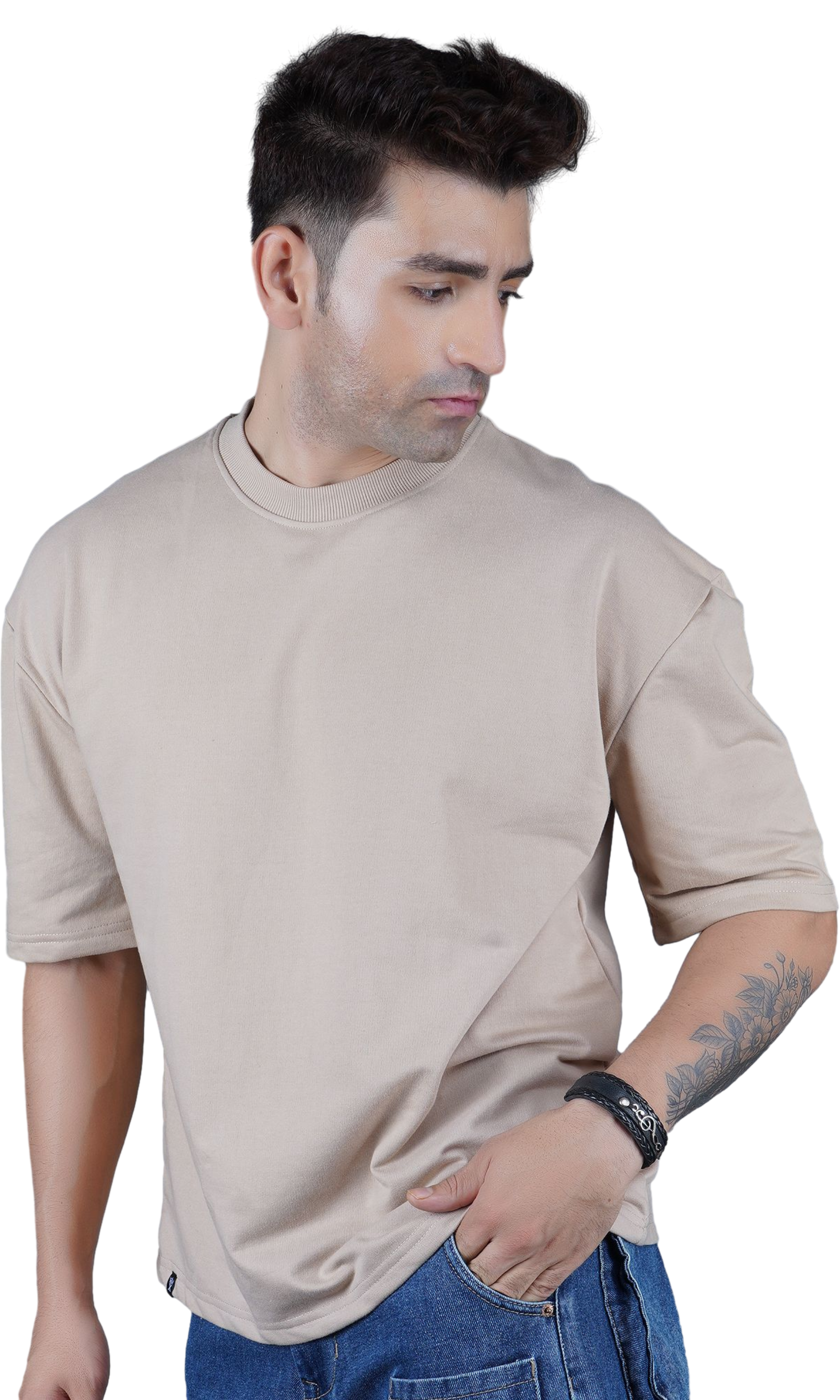 The INFAXON Beige Down Shoulder T-shirt features a relaxed fit with a stylish down shoulder design. Made from soft, breathable fabric, it offers all-day comfort and pairs easily with any outfit. The neutral beige color adds versatility, making it perfect for casual wear and effortless styling.
