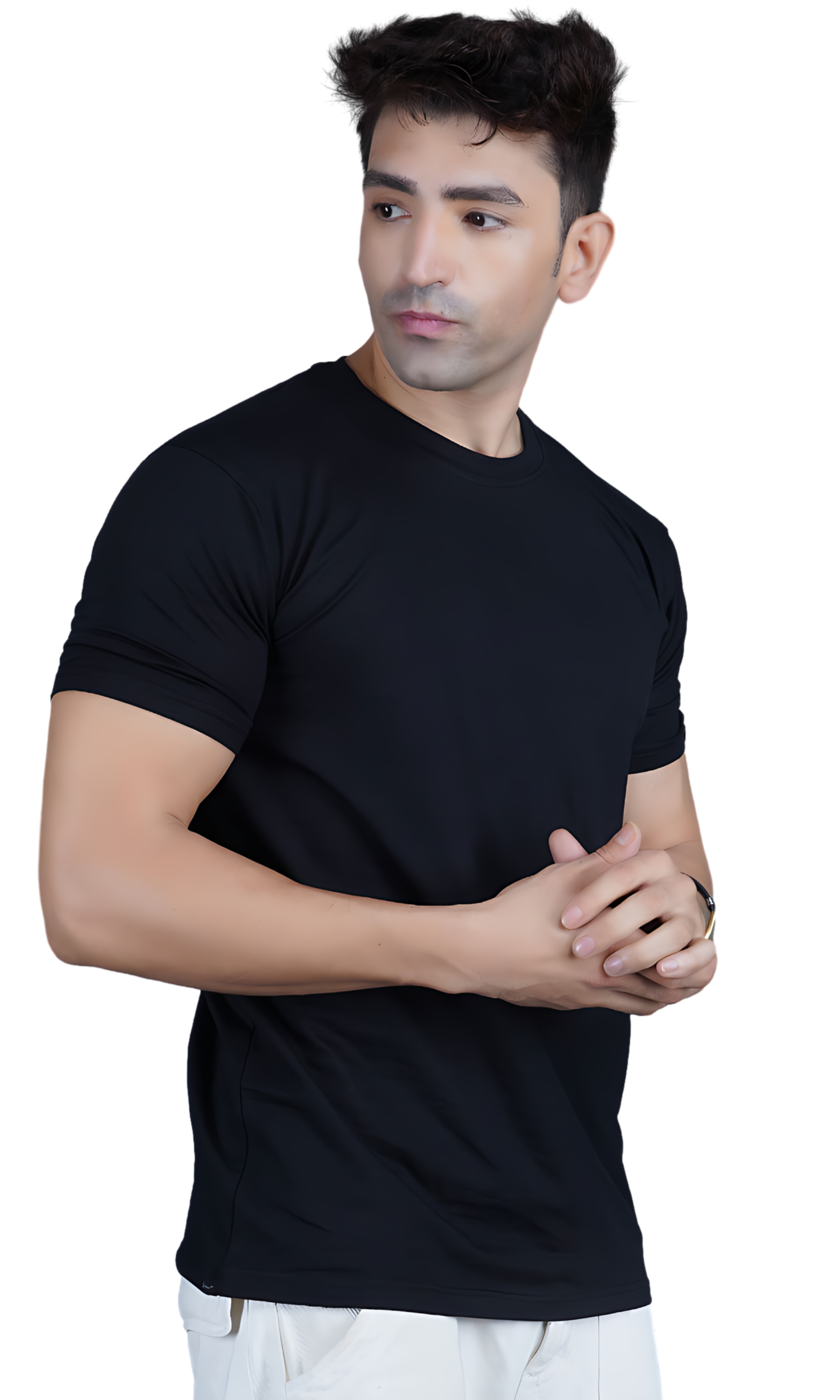 The INFAXON Black Cotton Slim Fit T-shirt combines a sleek, modern design with ultimate comfort. Made from soft and stretchy Lycra fabric, this T-shirt offers a tailored, regular fit that moves with you throughout the day. The versatile black color makes it easy to pair with any outfit, while the smooth, lightweight fabric ensures a breathable, flexible feel. Perfect for both casual and active wear, this T-shirt adds a stylish yet comfortable touch to your wardrobe.