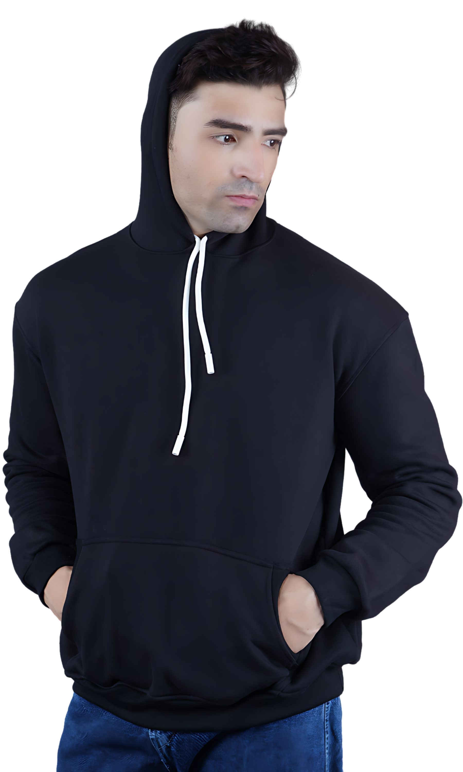 The INFAXON Black Oversized Hoodie combines comfort and style with a relaxed fit, adjustable hood, and front pocket. Its timeless black color makes it easy to pair with anything, perfect for casual wear or layering.