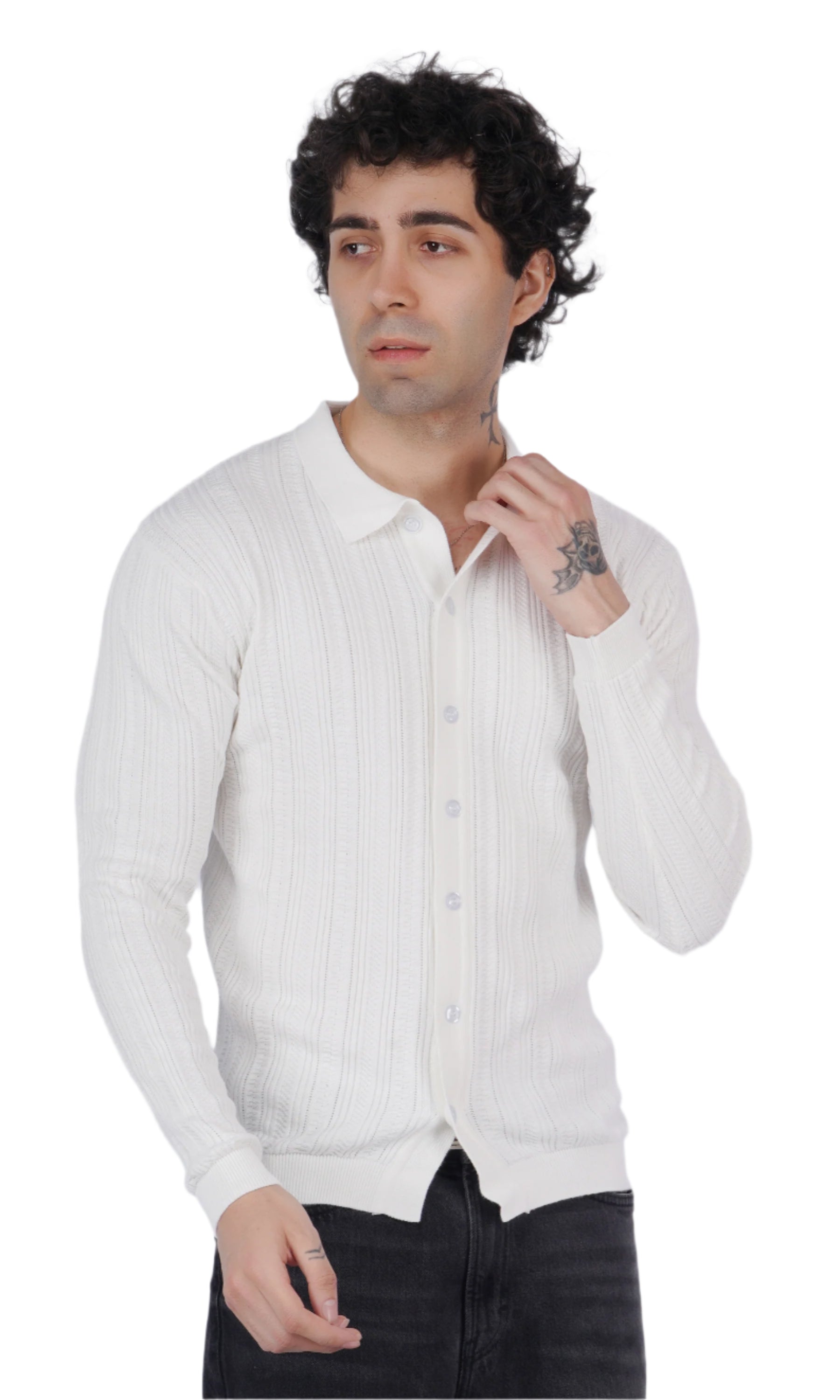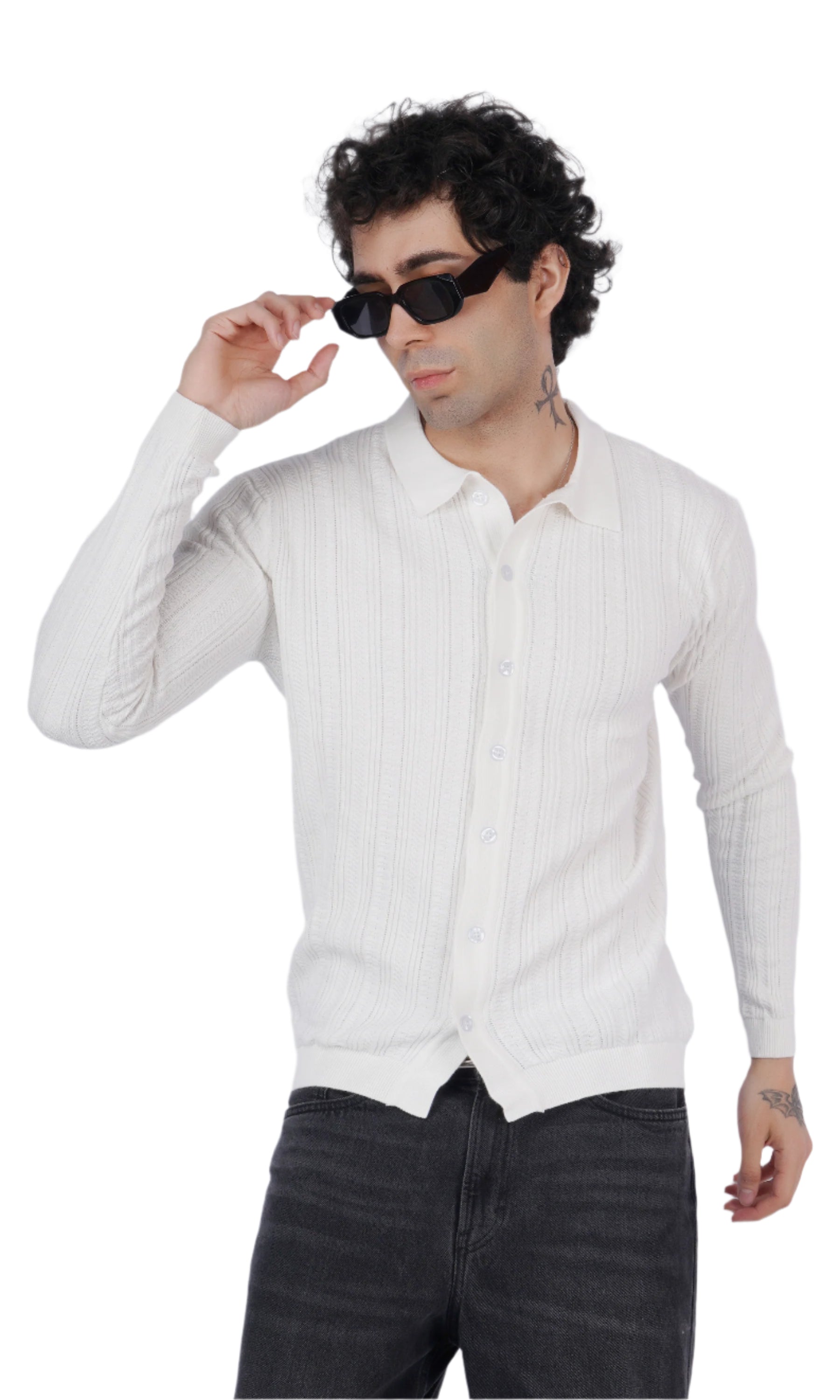 The INFAXON Pearl White Knitted Shirt offers a refined and elegant look with its soft, knitted fabric. The pearl white color provides a clean and versatile style, perfect for pairing with any outfit. With a relaxed fit and lightweight design, this shirt ensures comfort and breathability, making it an ideal choice for casual wear.