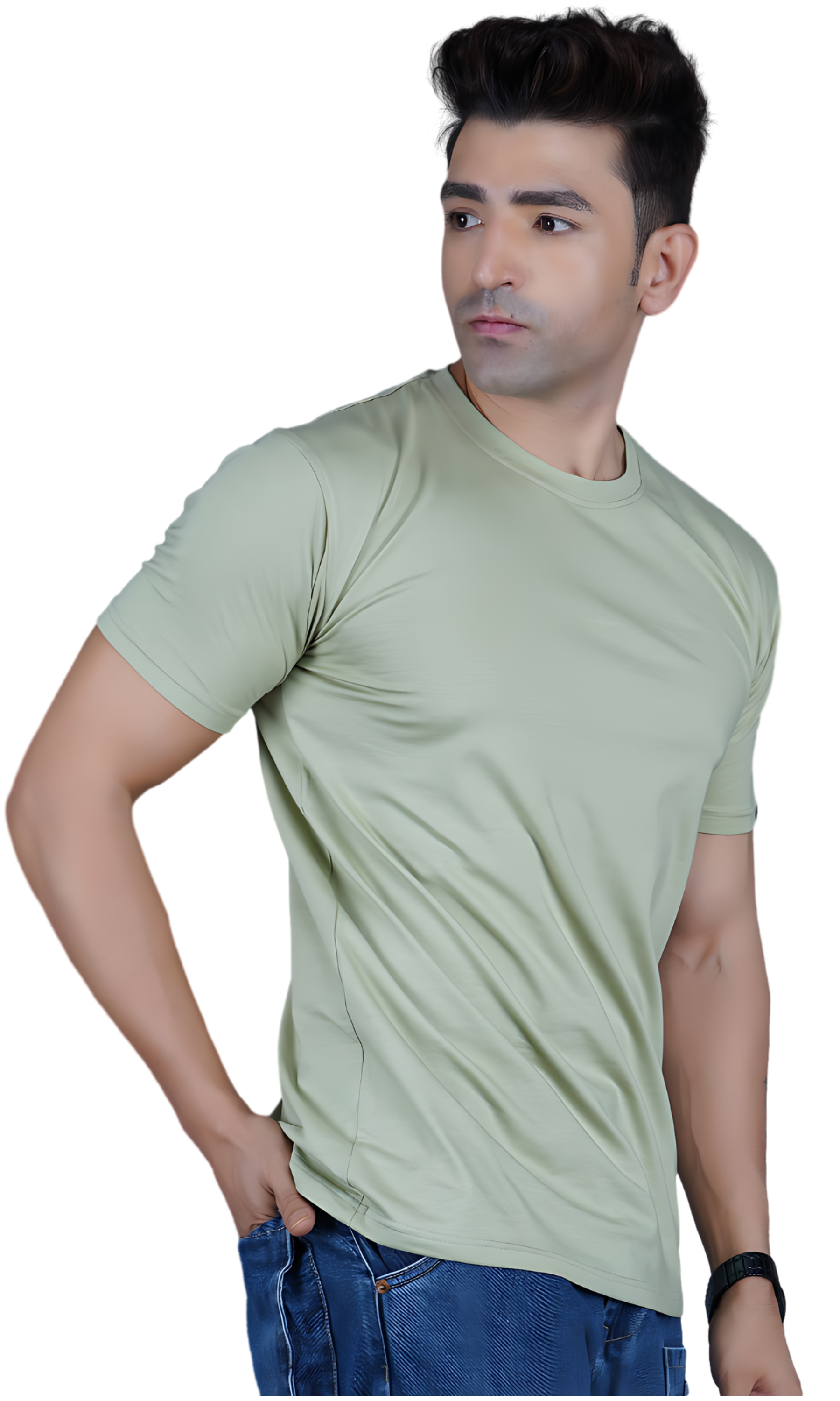 The INFAXON Pistachio Cotton Slim Fit T-shirt brings a fresh, vibrant touch to your wardrobe. Made from soft, stretchy Lycra fabric, this T-shirt offers a comfortable, regular fit that moves with you throughout the day. The light pistachio color adds a cool, modern look, while the breathable material ensures flexibility and all-day comfort. Perfect for casual wear or active moments, this T-shirt adds a stylish and versatile option to any outfit.