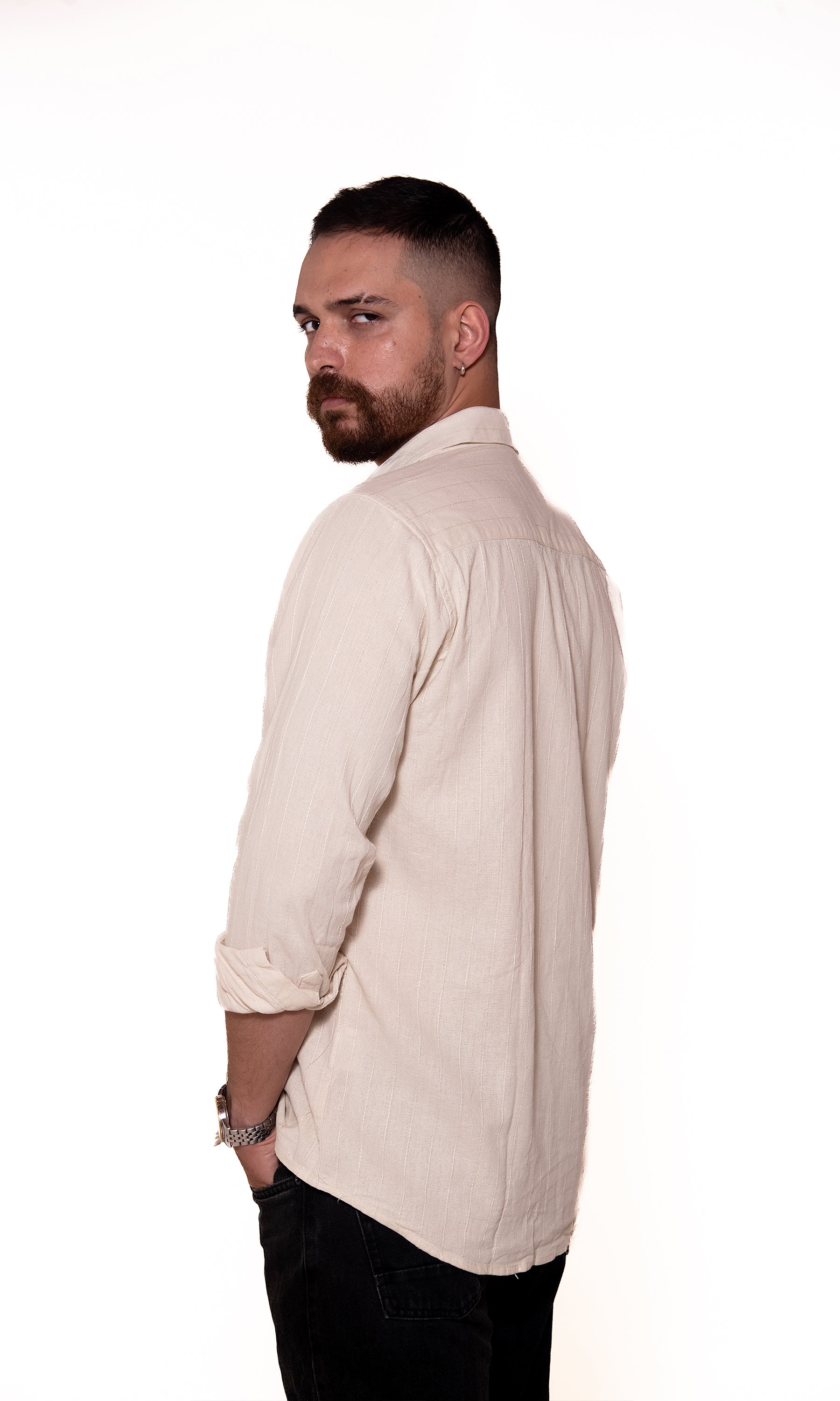 Crafted from high-quality cotton, the Raw Thread Shirt offers a textured beige fabric that combines comfort with subtle sophistication. Its tailored fit ensures a flattering silhouette, making it an ideal choice for those seeking both style and ease in everyday wear. Perfect for layering or wearing solo, this shirt balances durability with refined design.