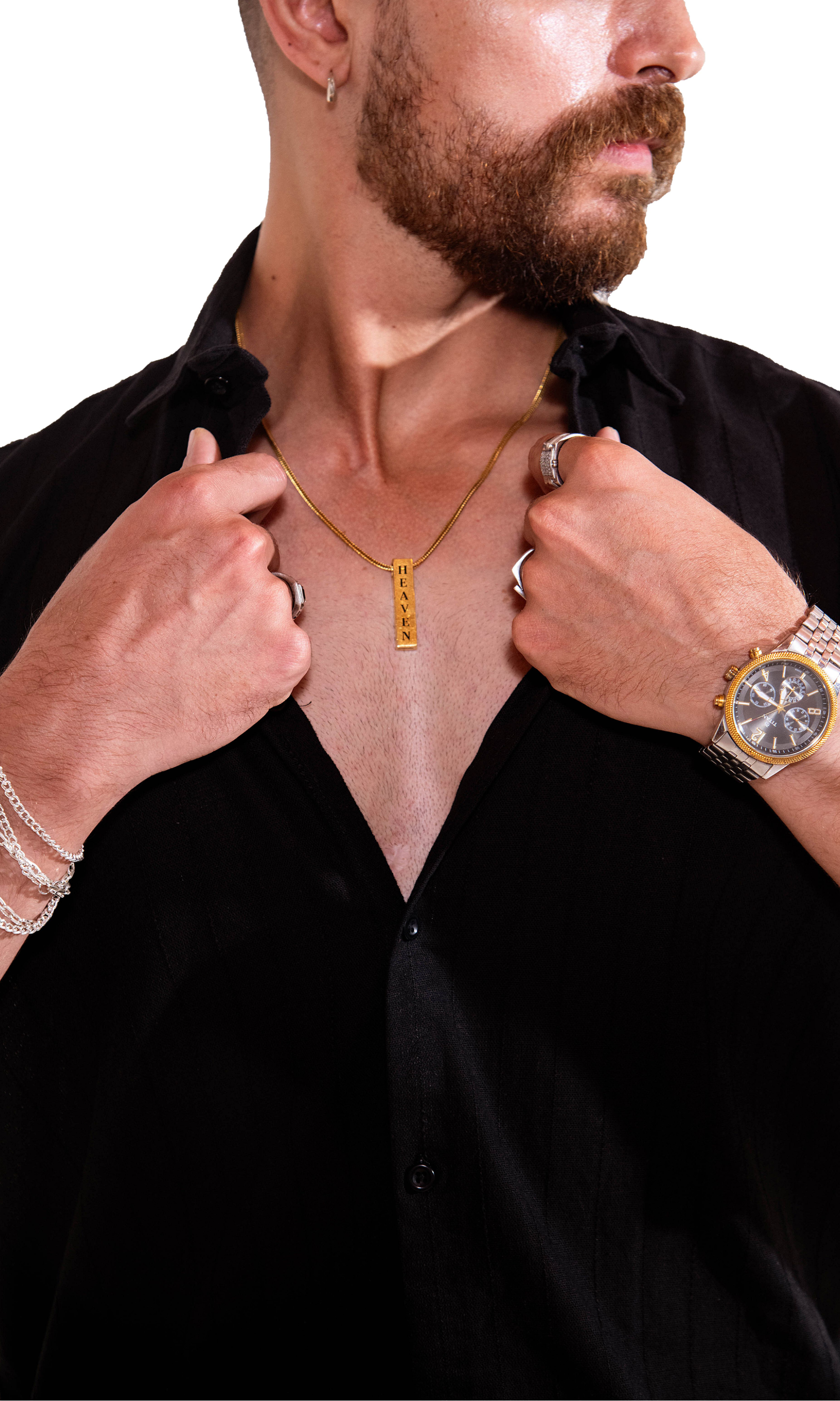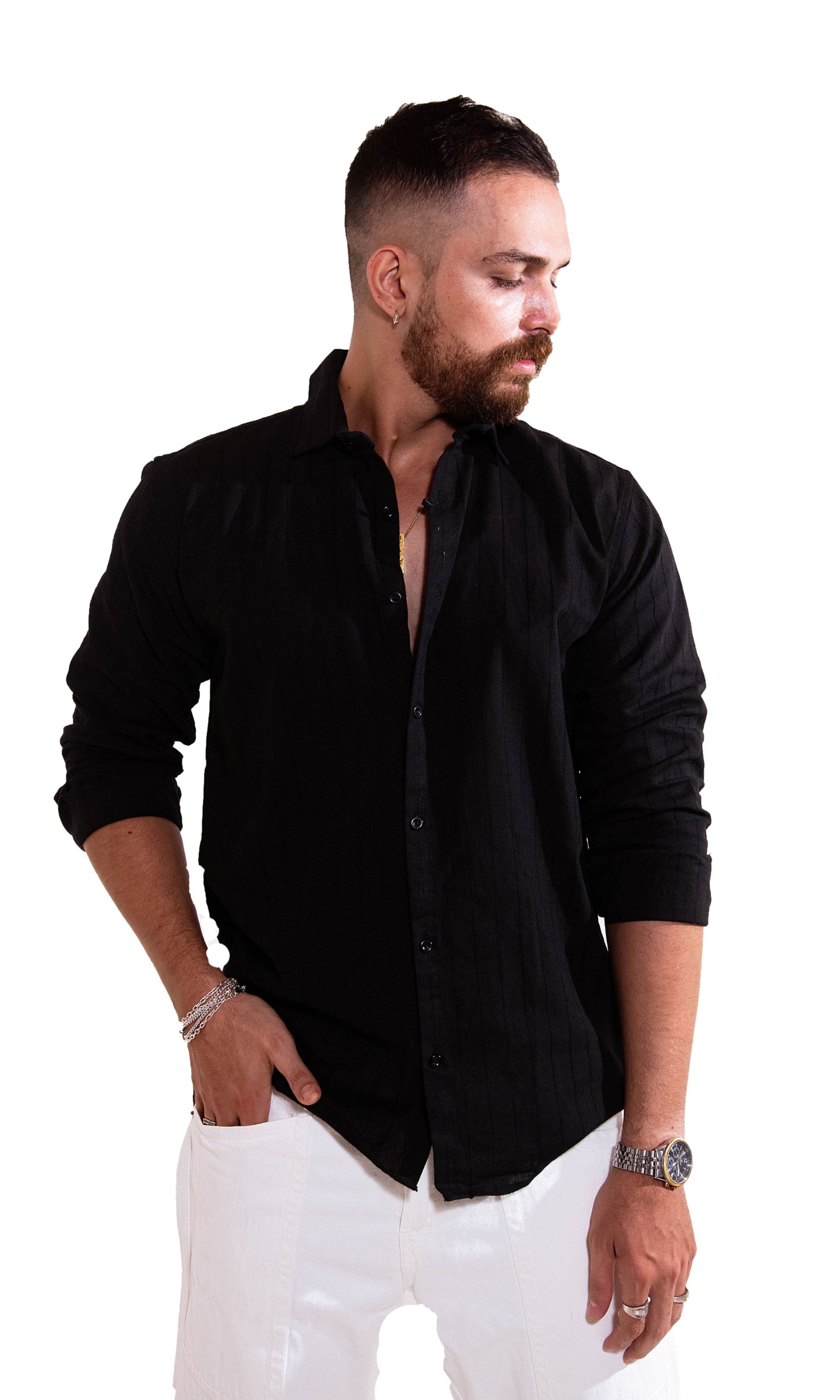 The Stealth Noir Shirt features a rich black hue with a distinctive textured fabric that enhances its sophisticated appeal. Designed for an expert fit, it contours comfortably to the body, ensuring both style and ease of movement. Ideal for those seeking a refined yet versatile wardrobe staple.
