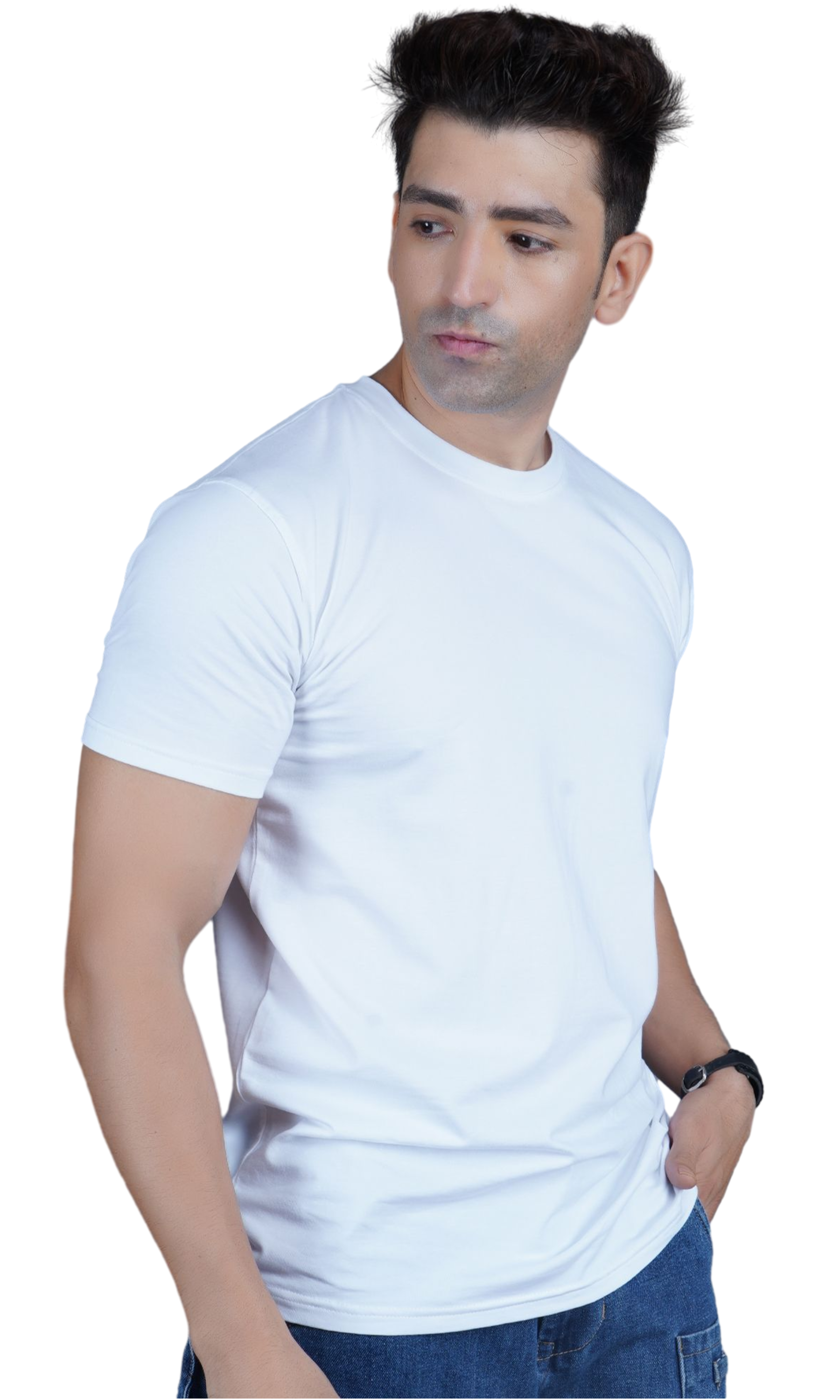 The INFAXON White Cotton Slim Fit T-shirt offers a clean, classic look with modern comfort. Made from soft, stretchy Lycra fabric, this T-shirt provides a regular fit that moves with you, ensuring flexibility and all-day comfort. The crisp white color is versatile and easy to pair with anything, making it a wardrobe staple. Ideal for casual outings or light activities, this T-shirt combines style, practicality, and comfort.